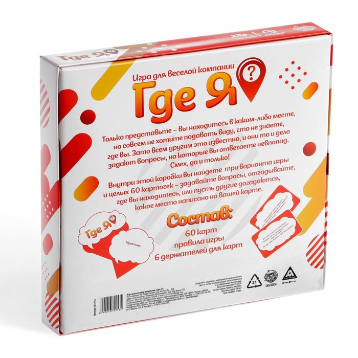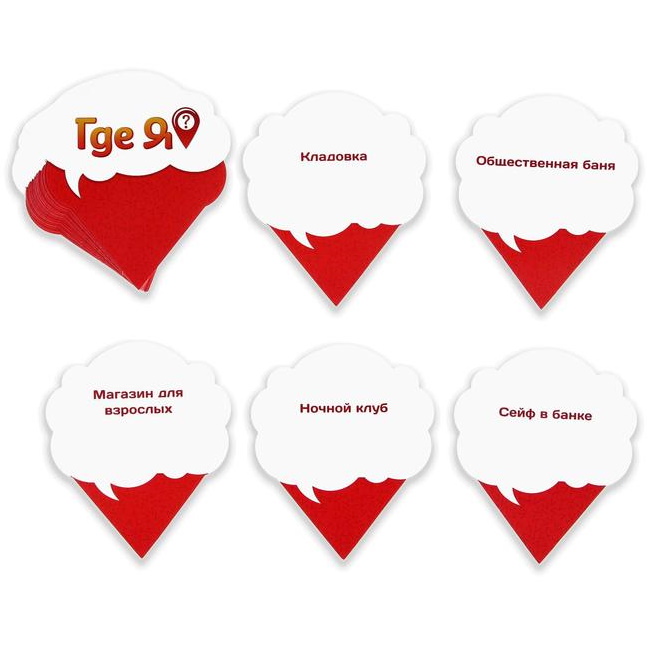 В правилах вы найдёте целых три варианта игры, один смешнее другого. Задавайте вопросы, отгадывайте, что написано на вашей карте, или пусть другие определяют, где вы находитесь. Действуйте и побеждайте!