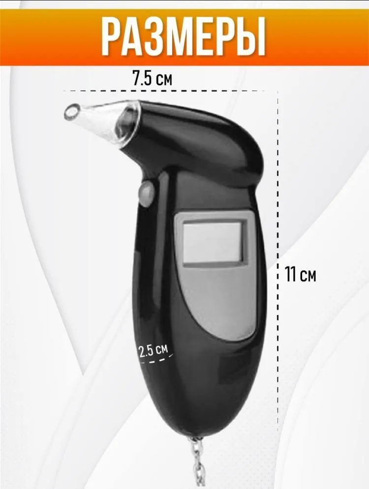С помощью этого алкотестера очень просто и комфортно пройти тест на алкоголь.Алкотестер (алкометр) быстро и точно оценит содержание алкоголя в Вашем выдохе (в крови) и выдаст результат в цифровом виде.В комплект входит три сменные насадки.
