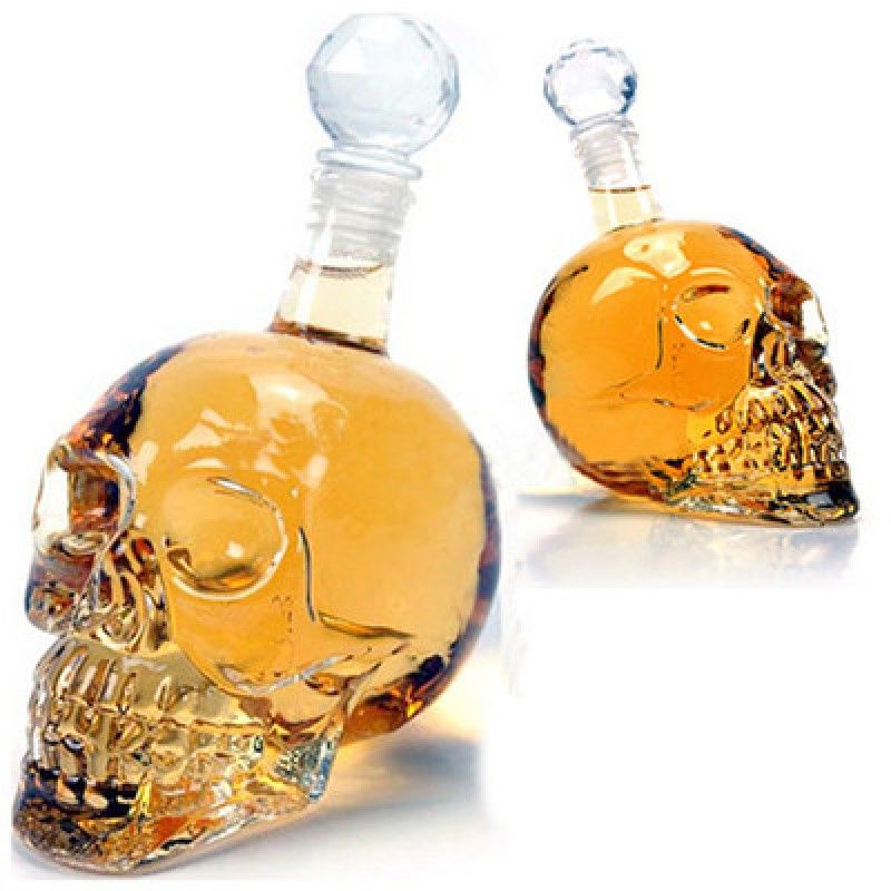 Интересный стеклянный графин в форме черепа станет прекрасным подарком для оригинального человека.Удивите вашего друга необычным стеклянным графином. Этот подарок отлично подойдет для вашего коллеги, начальника, делового парнтера. Подав в этом графине на стол вино, водку или коньяк, вы непременно удивите ваших гостей.
