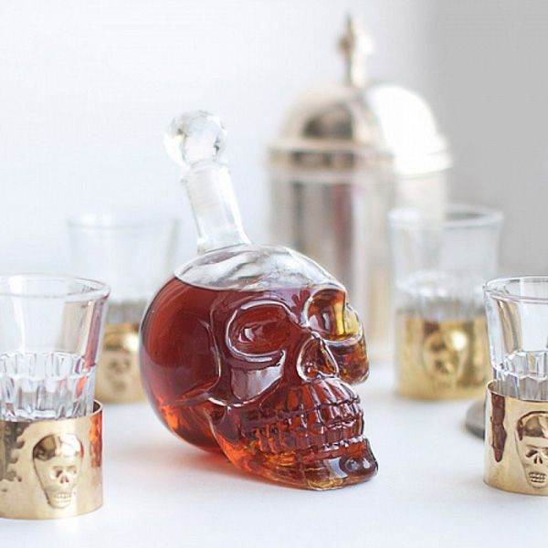 Интересный стеклянный графин в форме черепа станет прекрасным подарком для оригинального человека.Удивите вашего друга необычным стеклянным графином. Этот подарок отлично подойдет для вашего коллеги, начальника, делового парнтера. Подав в этом графине на стол вино, водку или коньяк, вы непременно удивите ваших гостей.