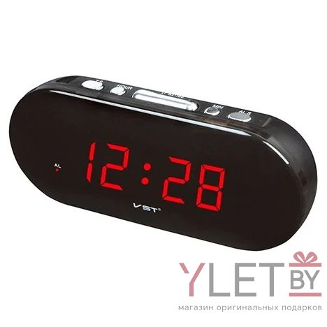 Электронные часы VST-715 - настольные электронные часы имеют приятную овальную форму, дисплей с яркой красной светодиодной подсветкой, а также, обладают встроенным будильником с функцией "SNOOZE" "сони". Когда звучит будильник Вы нажимаете кнопку "SNOOZE", будильник входит в режим сна. Сигнал будильника прозвучит снова через 8 минут.