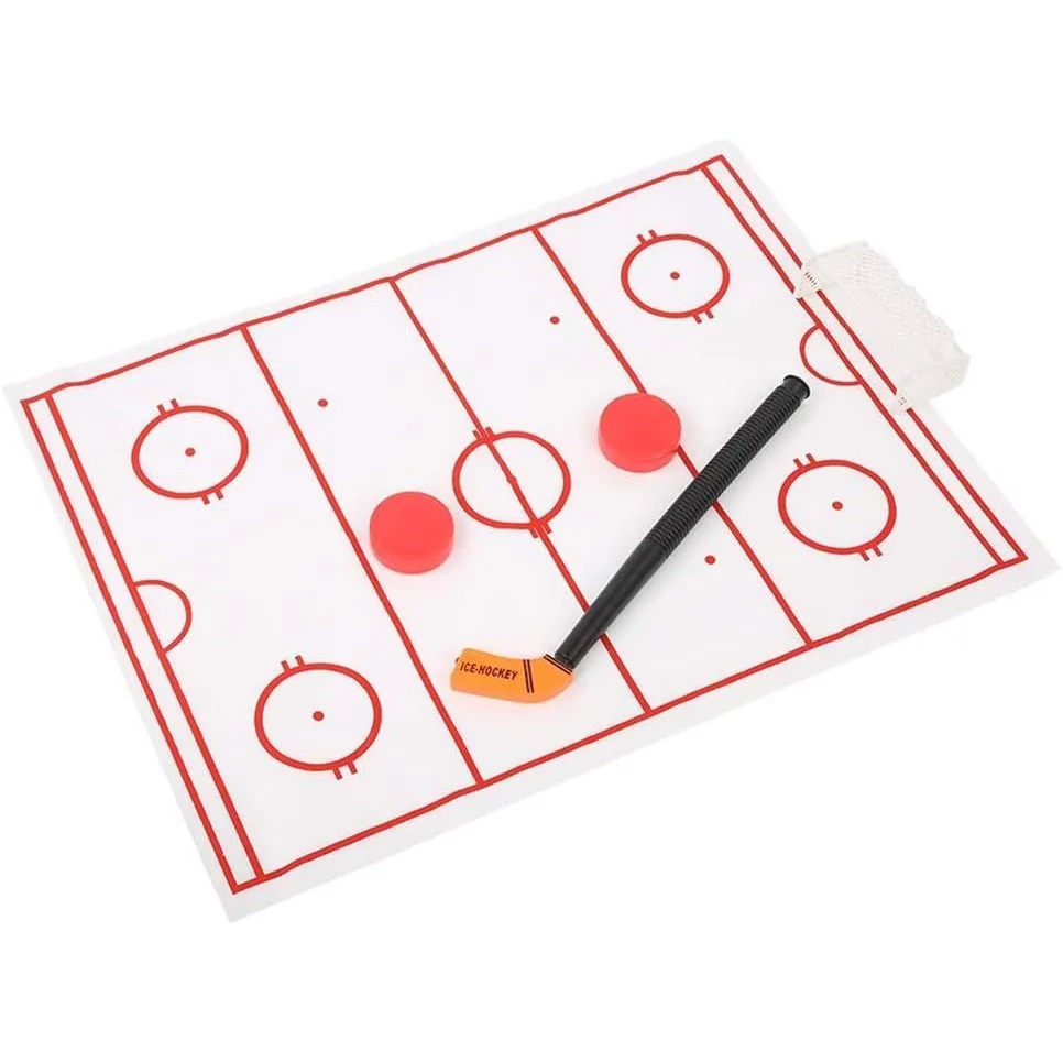 - Комплектация: клюшка, 2 шайбы, поле, ворота, табличка на дверь, коробка цветная.