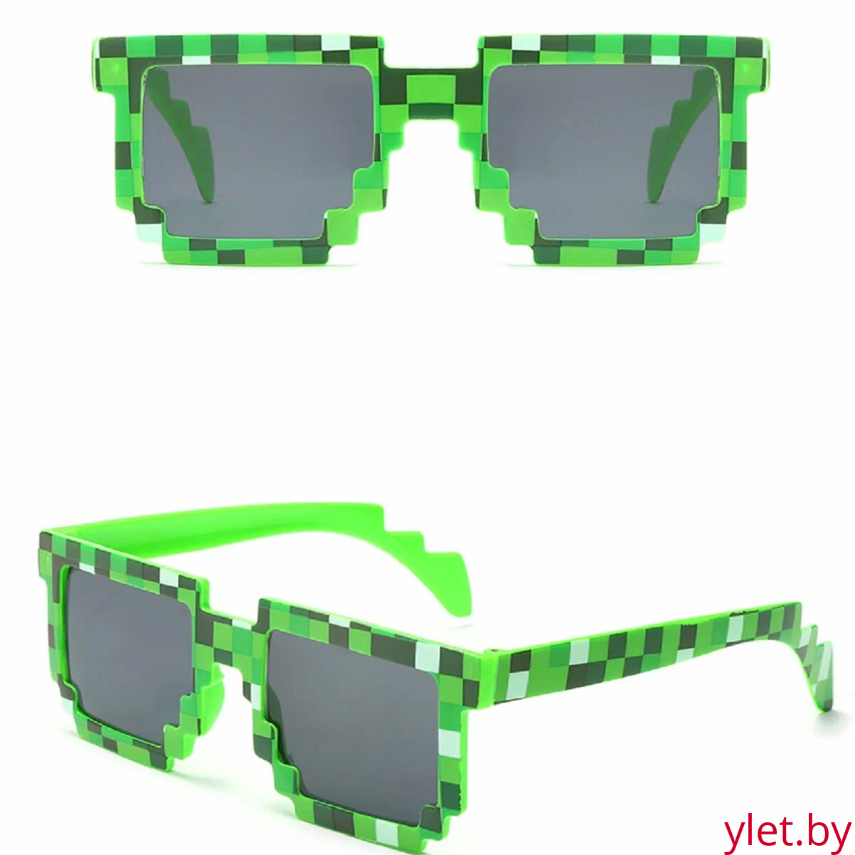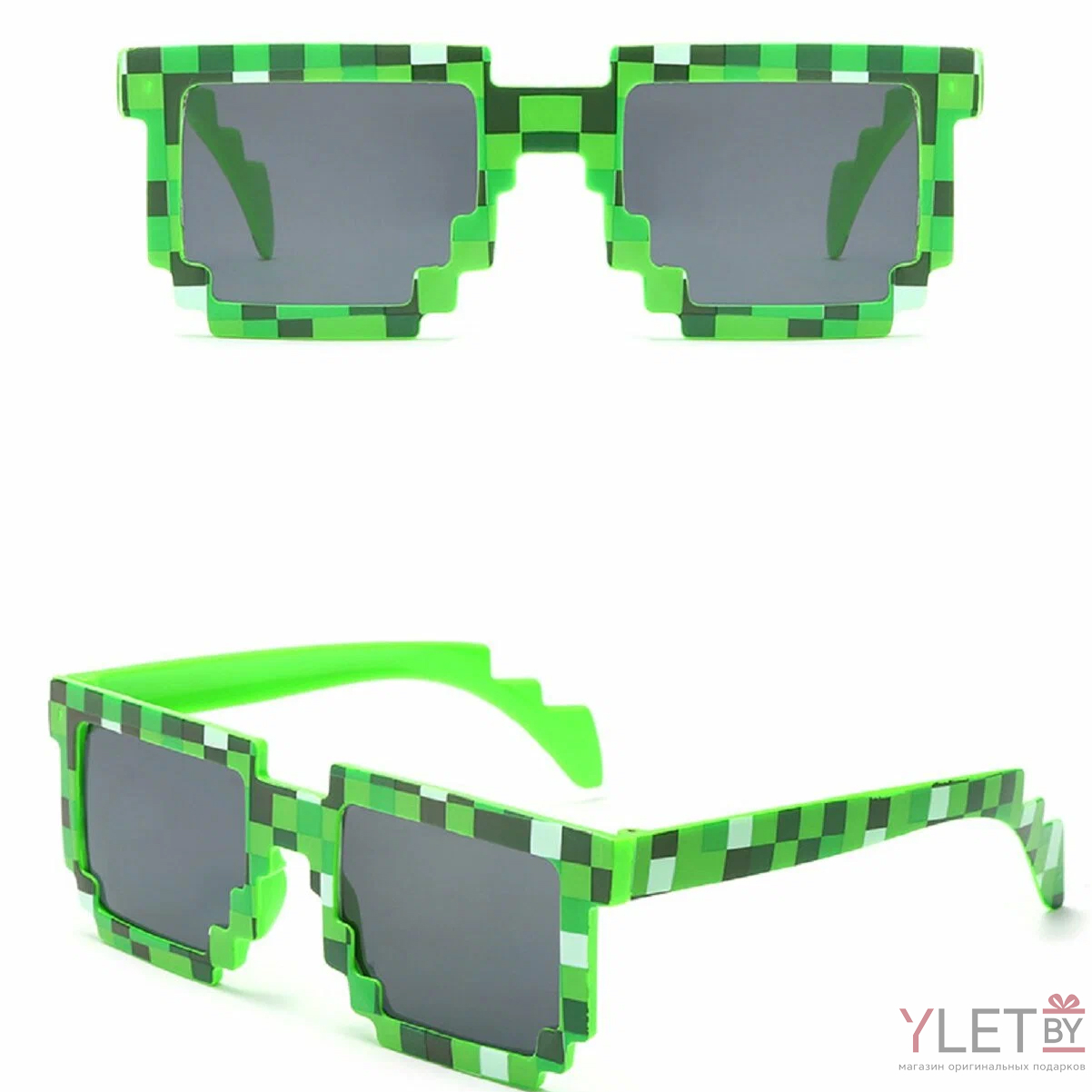 - Игровой дизайн: Очки выполнены в ярком зеленом цвете с элементами, вдохновленными стилистикой Minecraft. Они отлично подойдут для костюмированных вечеринок, игровых встреч и повседневного ношения.