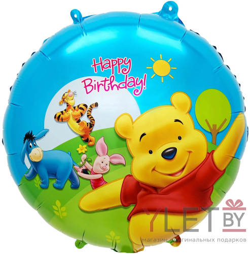Шар (18''/46 см) Круг, Любимый мишка, Винни пух, с Днем рождения