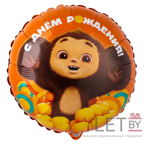 Шар (18''/46 см) Круг, С Днем Рождения. Чебурашка