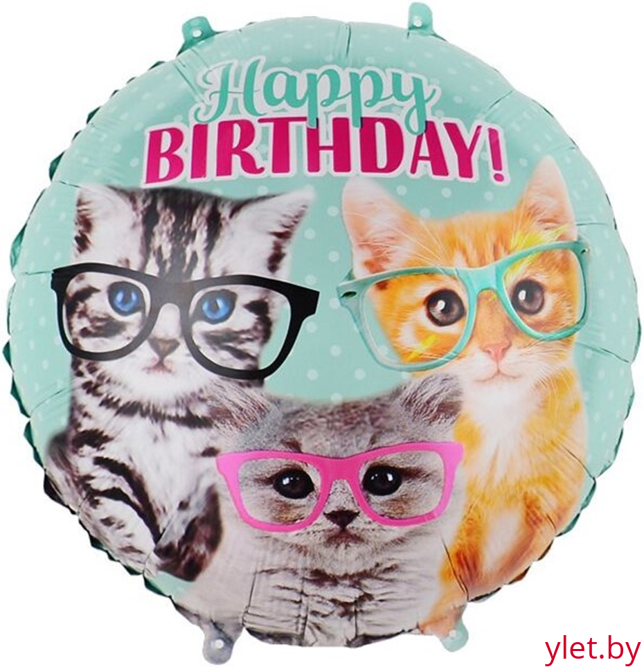 Шар (18''/46 см) Круг, С Днем Рождения, милые котята в очках
