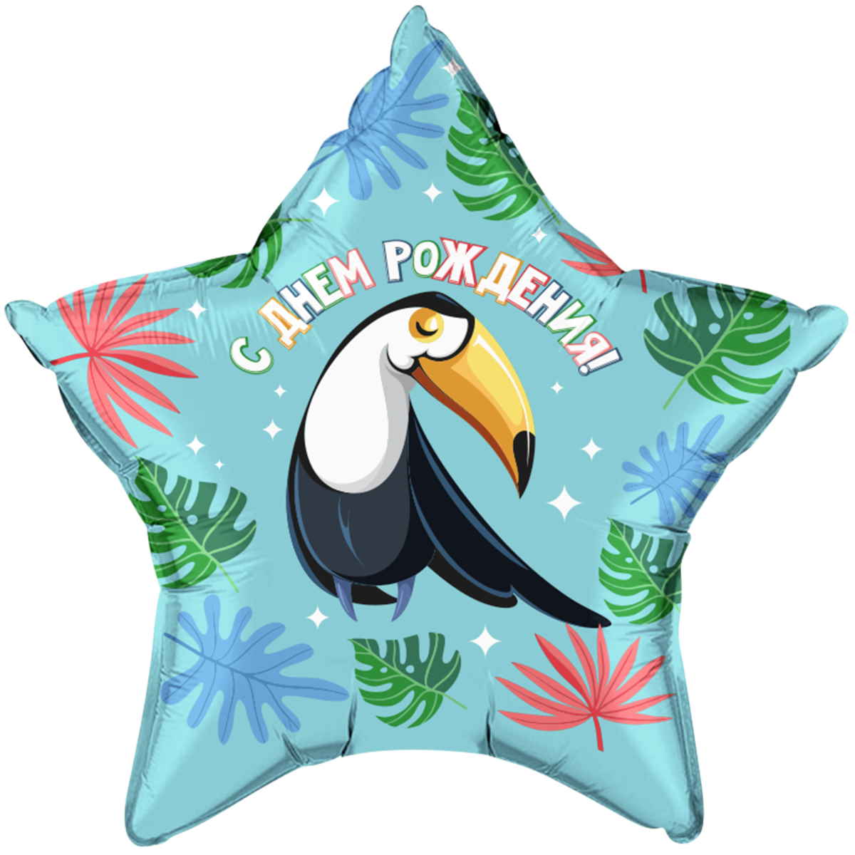 Шар (21''/53 см) Звезда, С Днем Рождения! Милый тукан, Бирюзовый
