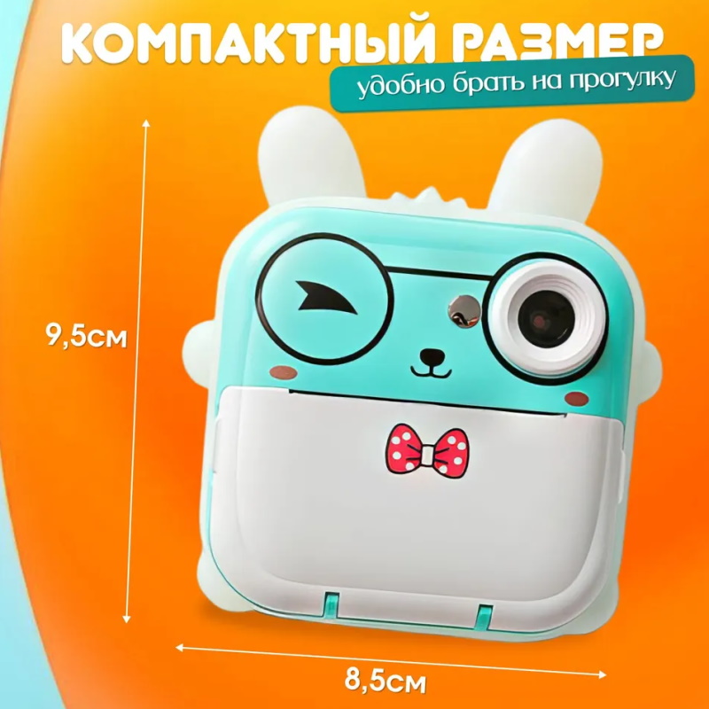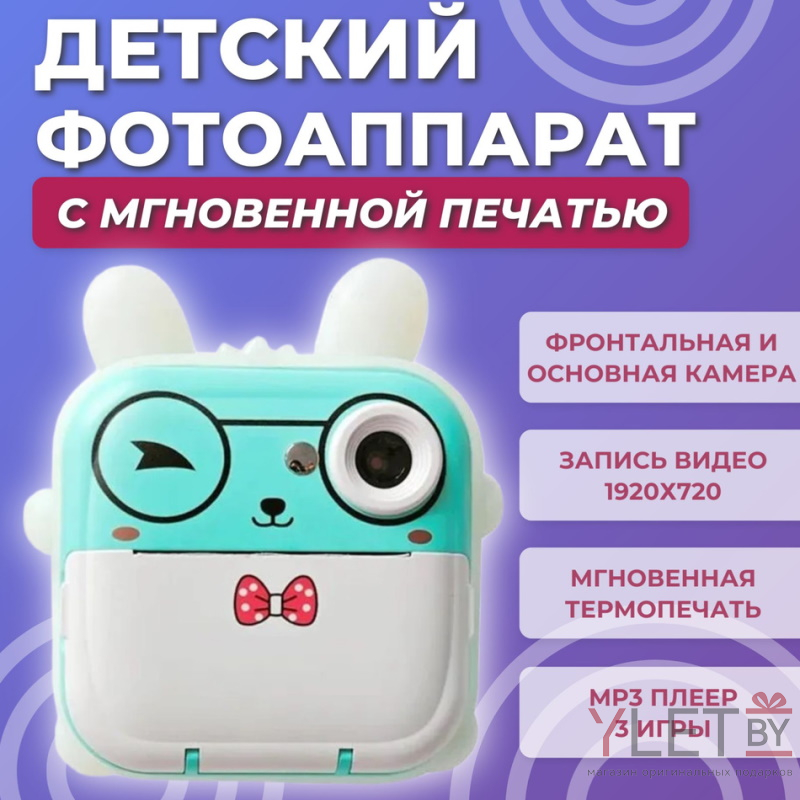 Фотоаппарат мгновенной печати, фотопринтер Зайчик, Голубой