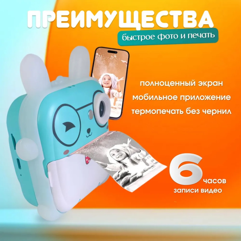 Детский фотоаппарат мгновенной печати раскрывает творческие навыки ребенка, фантазию и погружает в профессиональный мир фотографий. Увлекательный гаджет также интересен взрослому для игры с ребенком и не оставит равнодушными подростков. В функционале 3 игры развивашки, 20 веселых рамок и 10 фильтров для съемки фоток и видео. С помощью этого фотоаппарата ваш ребенок сможет воплотить свою фантазию в жизнь. Он сможет сохранить воспоминания о самых ярких моментах своей жизни, напечатав их сразу же после съемки. Благодаря возможности печатать раскраски, ваш ребенок сможет развивать свою творческую натуру и создавать уникальные произведения искусства.Этот фотоаппарат также позволяет печатать шпаргалки, что делает его незаменимым помощником в учебе. Ваш ребенок сможет легко и быстро создавать и печатать шпаргалки для повторения материала и улучшения успеваемости в школе. Печать фото и раскрасок осуществляется просто и удобно с помощью смартфона. Все, что нужно сделать, это подключить фотоаппарат к смартфону и выбрать нужное изображение или раскраску. Фотоаппарат мгновенно напечатает выбранный материал.