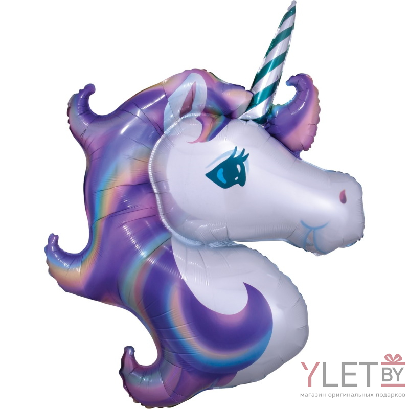 Шар (44''/112 см) Фигура, Голова, Нежный Единорог, Сиреневый