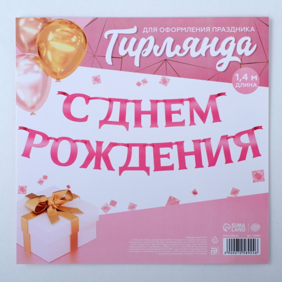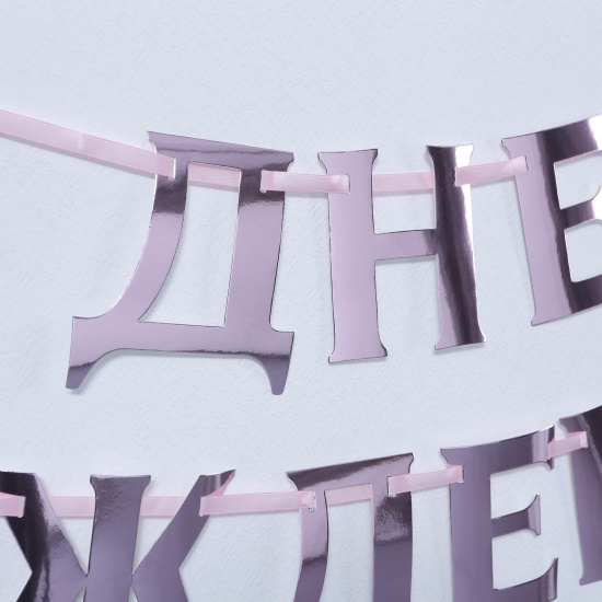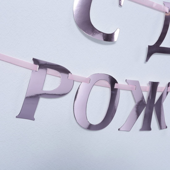 Гирлянда на ленте С ДР розовый металлик, длина 140 см