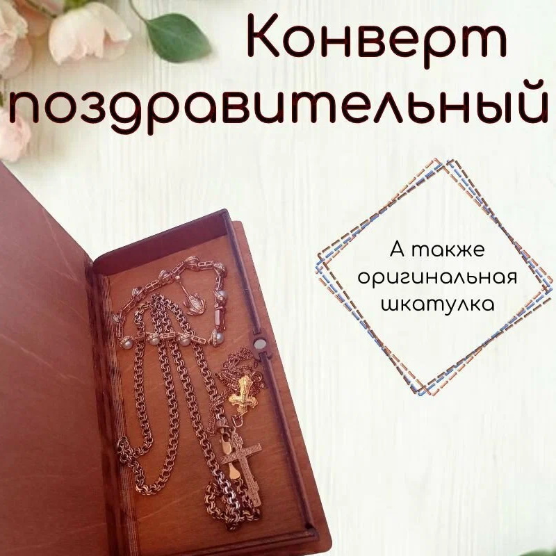 Деревянная купюрница для хранения банкнот. Основа сделана из фанеры на поверхности нанесена надпись "На Женские радости". Купюрница легко открывается и закрывается за счет надежного магнита. В конверте шкатулке удобно дарить деньги. Поможет выделиться на торжественном событии