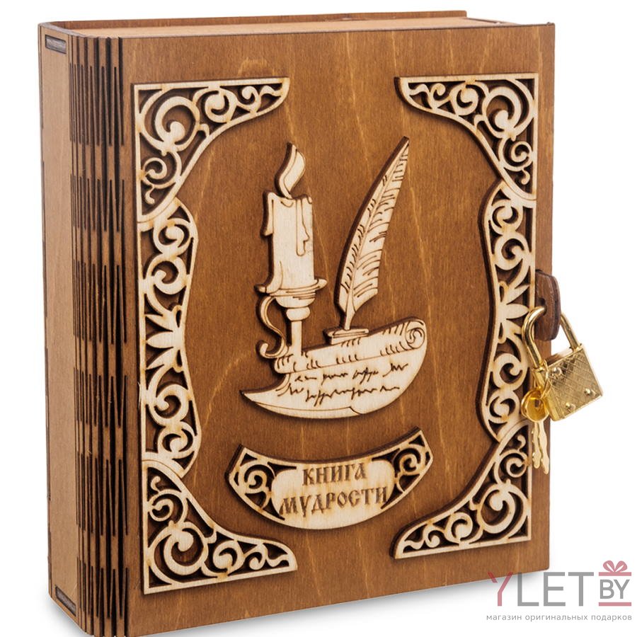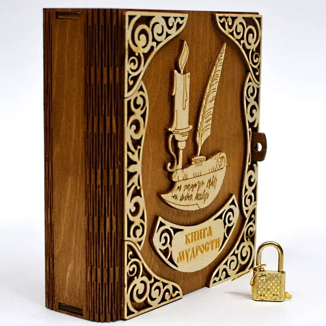 Книжка копилка из дерева Книга Мудрости с замком, в природном гармоничном стиле, с теплом и энергией натурального дерева. Все детали сундучка: основание, ручки, замочек, петли - деревянные, тщательно продуманы и выдержаны в едином стиле. Замочек-петля плотно закрывается. В петле есть отверстие, куда можно вставить замочек и закрывать сундук на ключ!