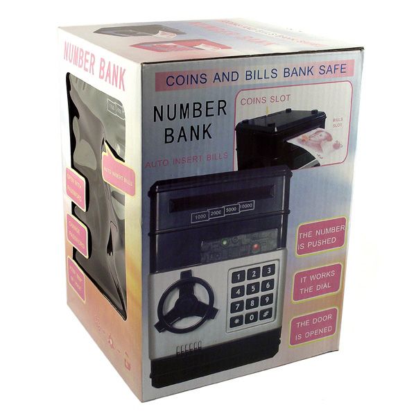 Высокое качество изготовления, пластика. Сейф - копилка игрушка электронная для монет и купюр с автоматическим затягиванием купюр внутрь.
