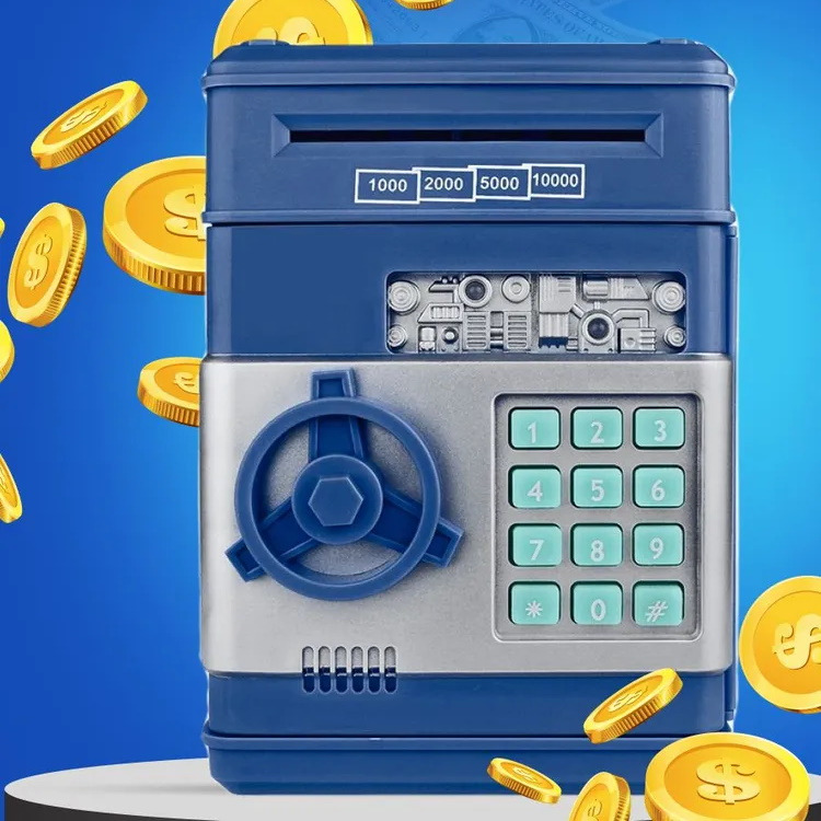 Копилка сейф темная синяя большая