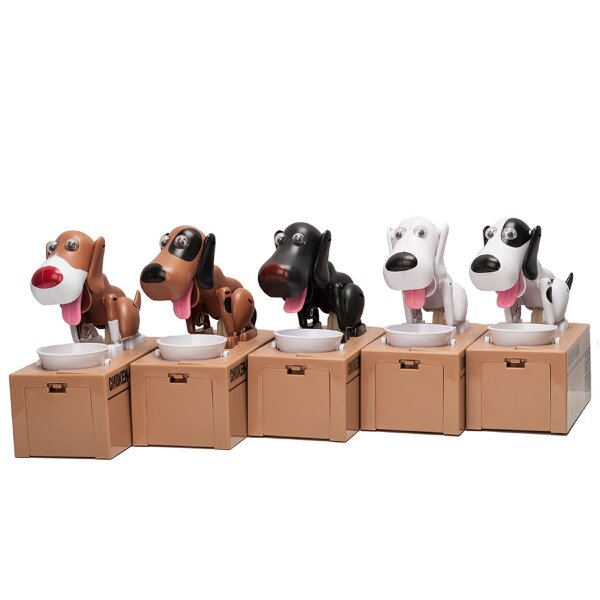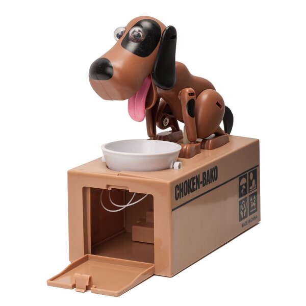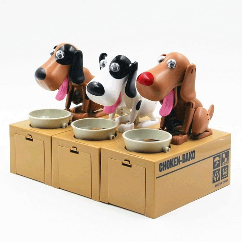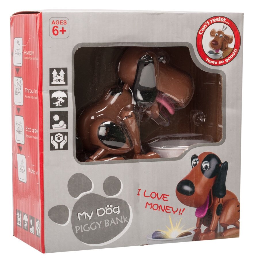 Задача у собаки-копилки совершенно обычная — хранить деньги, но наблюдать, как попадают в нее монетки очень увлекательно. Вы кладете монету на блюдце перед собачкой, она начинает из тарелочки кушать, высовывая язычок, таким образом продвигая монету в прорезь. С такой копилкой станет проще научить ребенка беречь и копить деньги, ведь «подкармливать» милую собачку будет одно удовольствие.