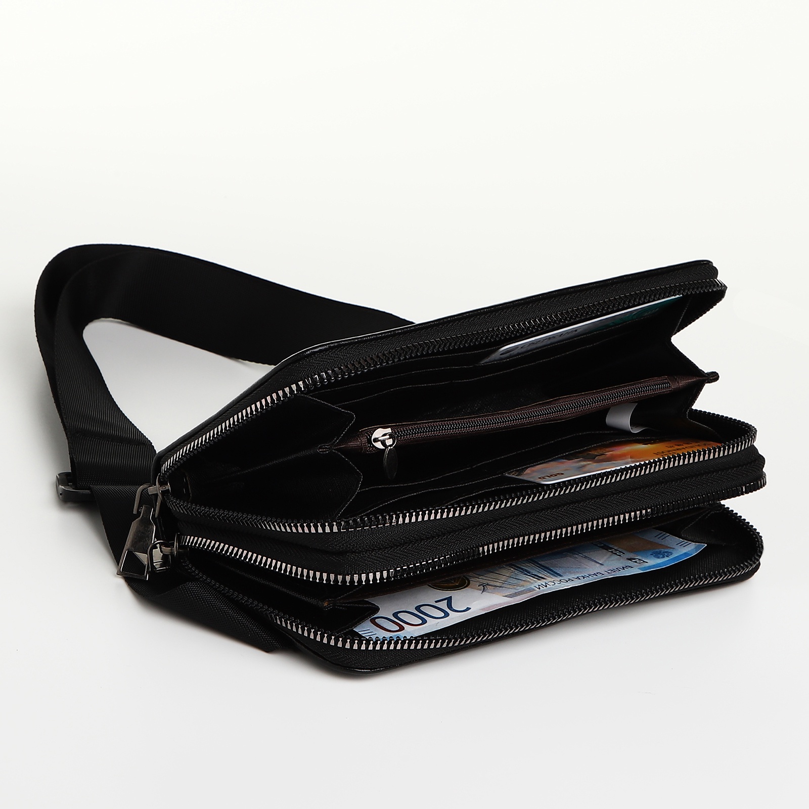 Портмоне-клатч мужской "Премиум" на молнии, цвет чёрный