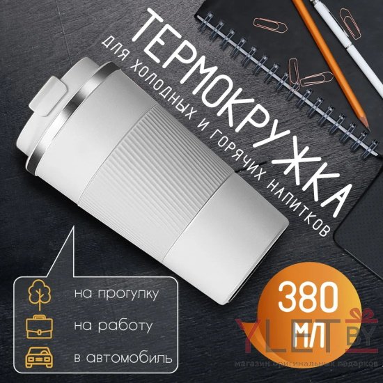 - Автомобильная кружка. Подойдёт в подарок автомобилистам. Термокружка сохраняет чай или кофе тёплыми на протяжении 4-6 часов, а в долгой поездке напиток можно подогреть прямо в кружке, подключив её к прикуривателю. Удобная форма и защищённое отверстие для питья не дадут горячей жидкости пролиться во время движения.