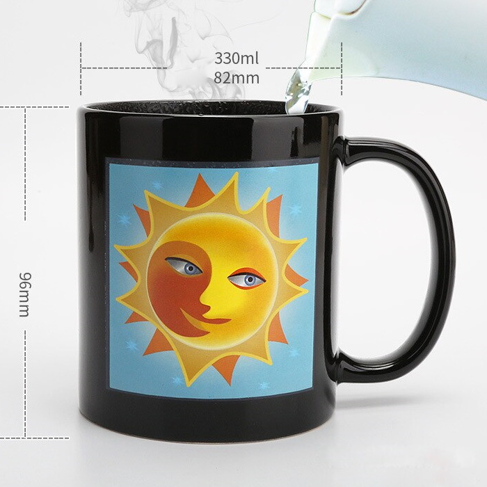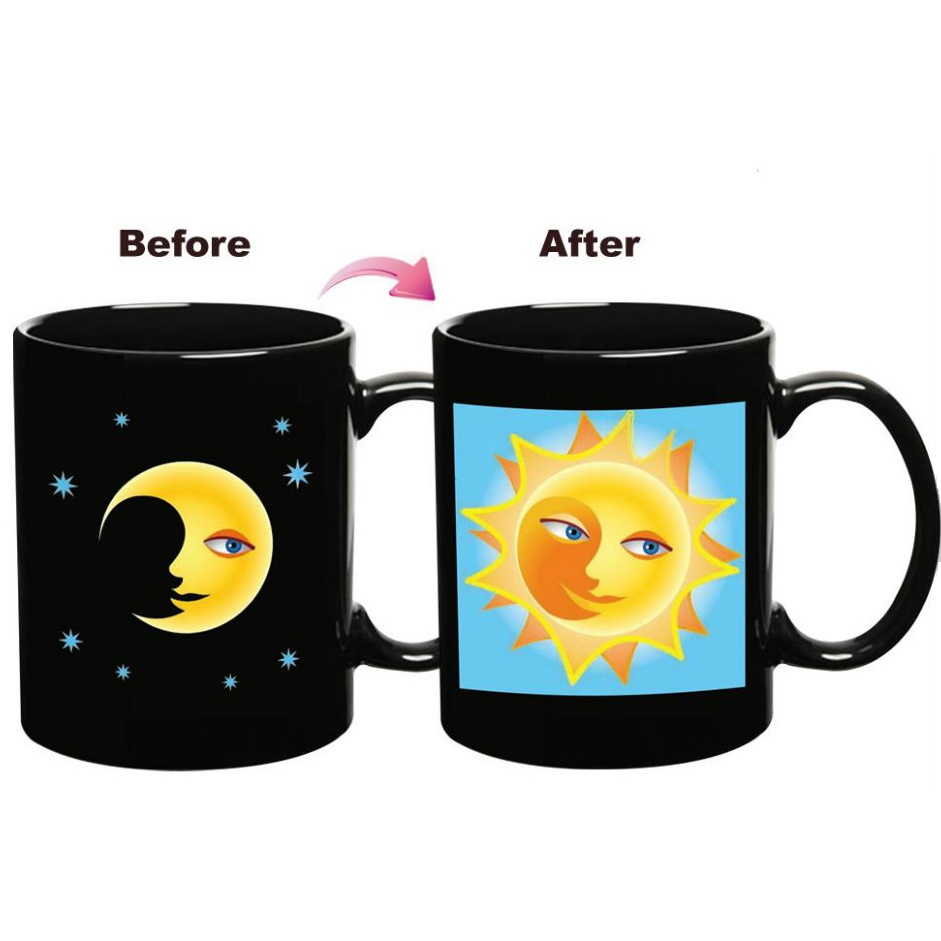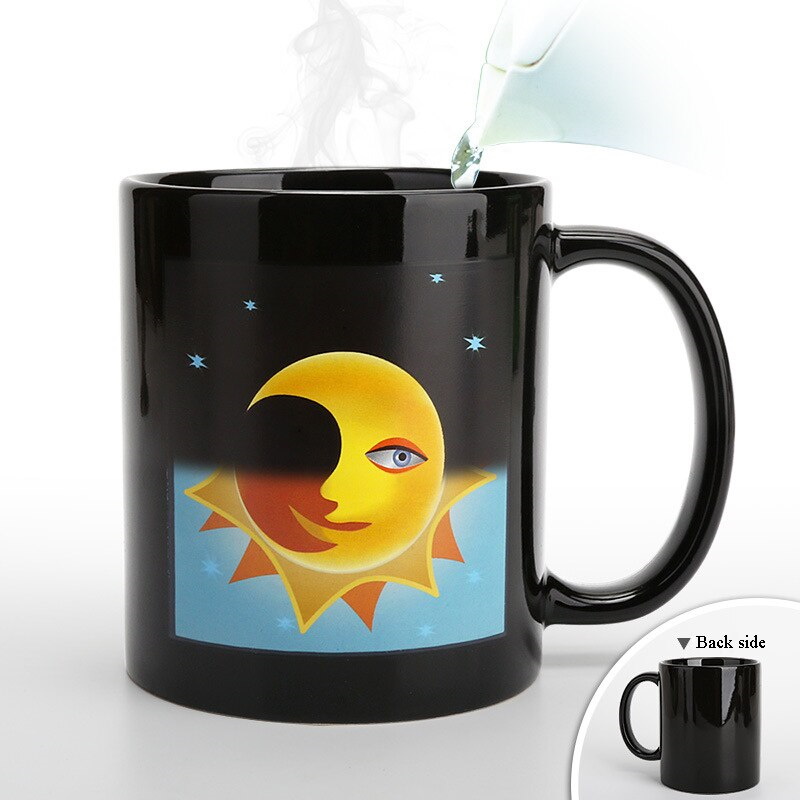Оригинальная кружка, которая изменит рисунок луны на солнце, как только Вы наполните ее горячим напитком. А фон кружки из звездного неба поменяется на голубой.