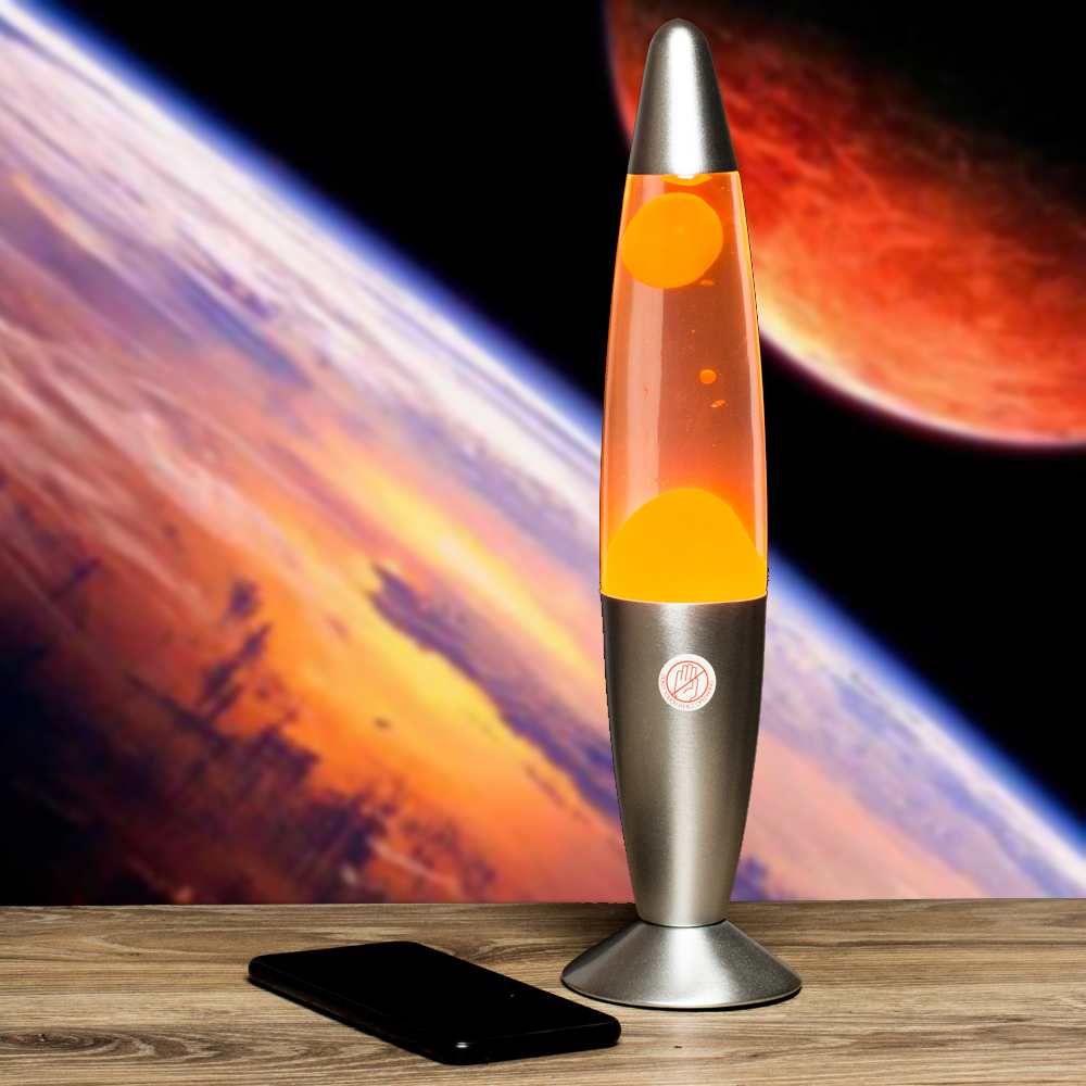 Лава лампа с воском в сером корпусе 42 см Оранжевая