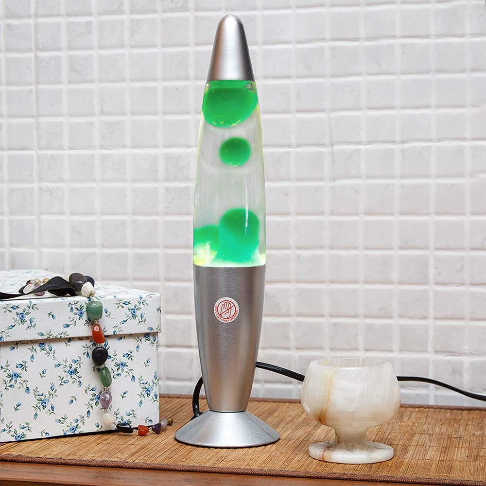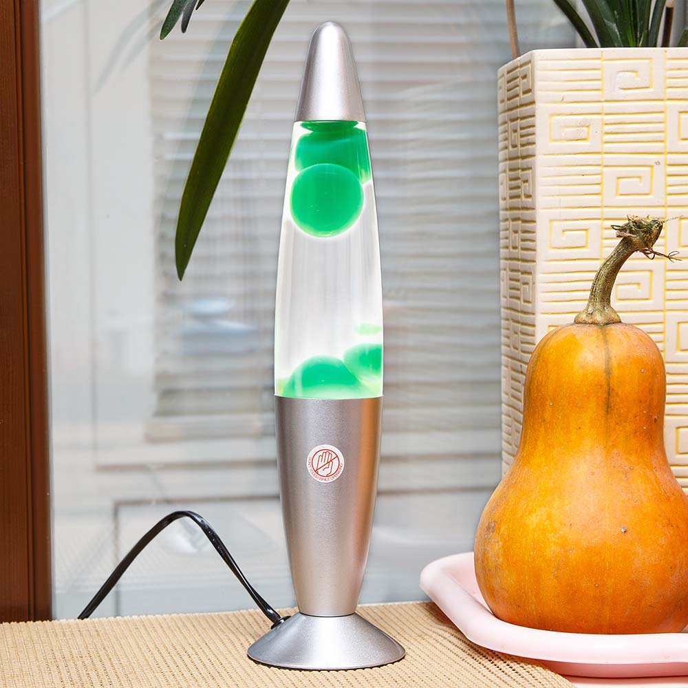 Лава лампа с воском в сером корпусе 42 см Зеленая