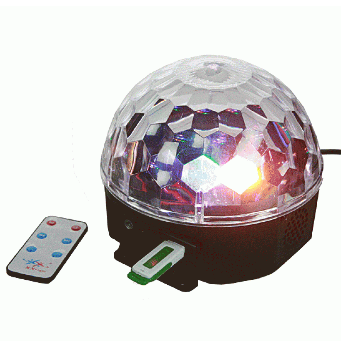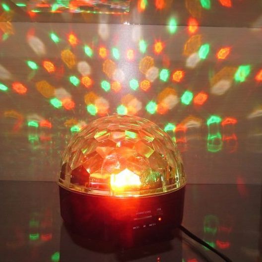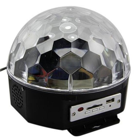 - Диско шар оснащен MP3 проигрывателем с двумя встроенными колонками