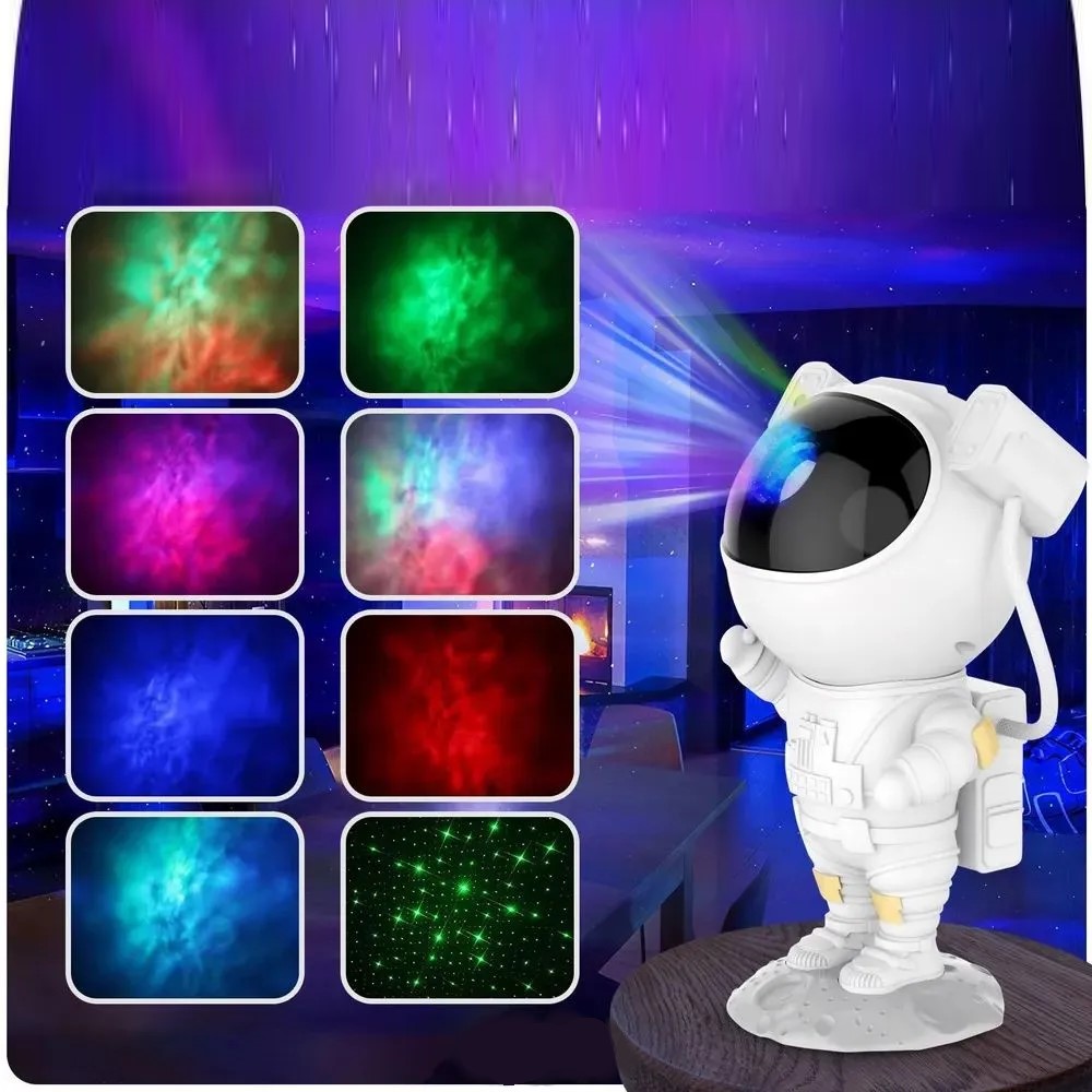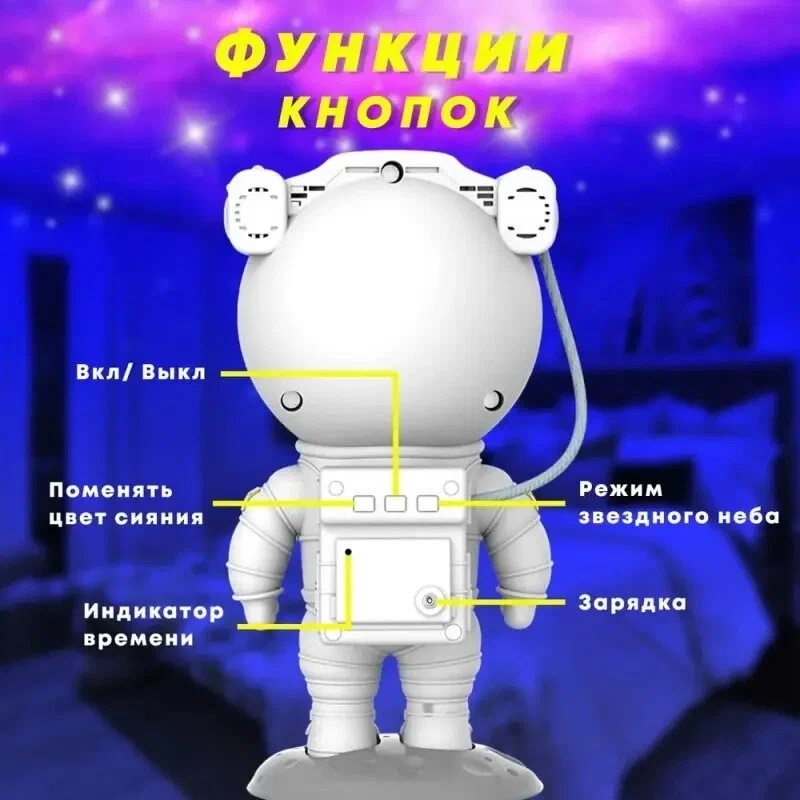 Лазерный светодиодный ночник проектор звездного неба космонавт в розетку - это целый планетарий в Вашу детскую, спальную или гостиную комнату. Ночник космонавт дополнит интерьер любого стиля. Он сможет создать собственную вселенную, меняя цвета туманности, включая и отключая звездное небо у Вас в комнате. Проектор ночник - самый романтичный подарок для детей и взрослых. Его можно подключить к повербанку и взять с собой.