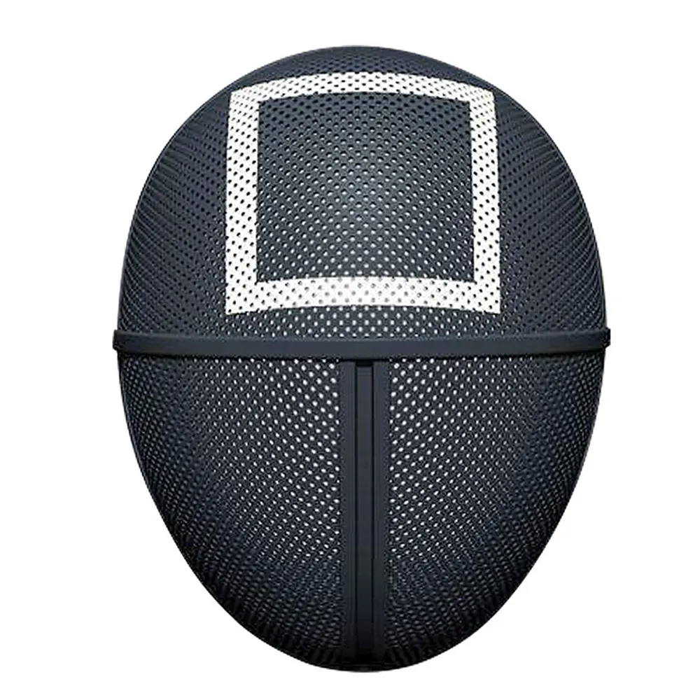 Маска из сериала Игра в Кальмара. Это не просто блестящий способ выделиться на вечеринке.С такой маской можно сделать крутые видеоролики и атмосферные фотографии, ну или просто обращать на себя внимание других людей. Маска очень удобная позволяет носить ее долго без какого либо дискомфорта.