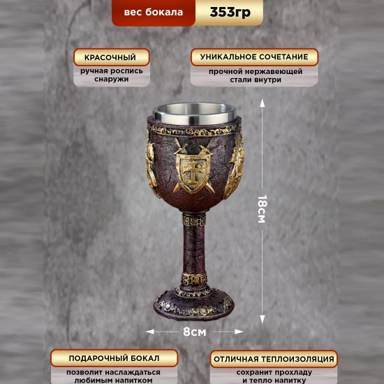 Стильный и оригинальный бокал. Решили устроить вечеринку? Такие бокалы приукрасят любое праздничное мероприятие и сделают его оригинальнее и веселее. Хватит пить из обычных бокалов! Время меняться и переходить на стильные вещи. Бокал выглядит просто невероятно! Бокалы из этой серии выполнены в готическом стиле, поэтому будут прекрасно смотреться на тематической вечеринке или на Хэллоуин. Наполните его Вашим любимым напитком, и вы не сможете удержаться от восхищения. Бокал выполнен из керамических материалов. Внутри бокал выполнен из нержавеющей стали, поэтому Ваш напиток будет сохранять температуру дольше, чем обычный бокал. Помимо основных своих функций, бокал послужит прекрасным украшением кухонного интерьера и станет памятным сувениром.