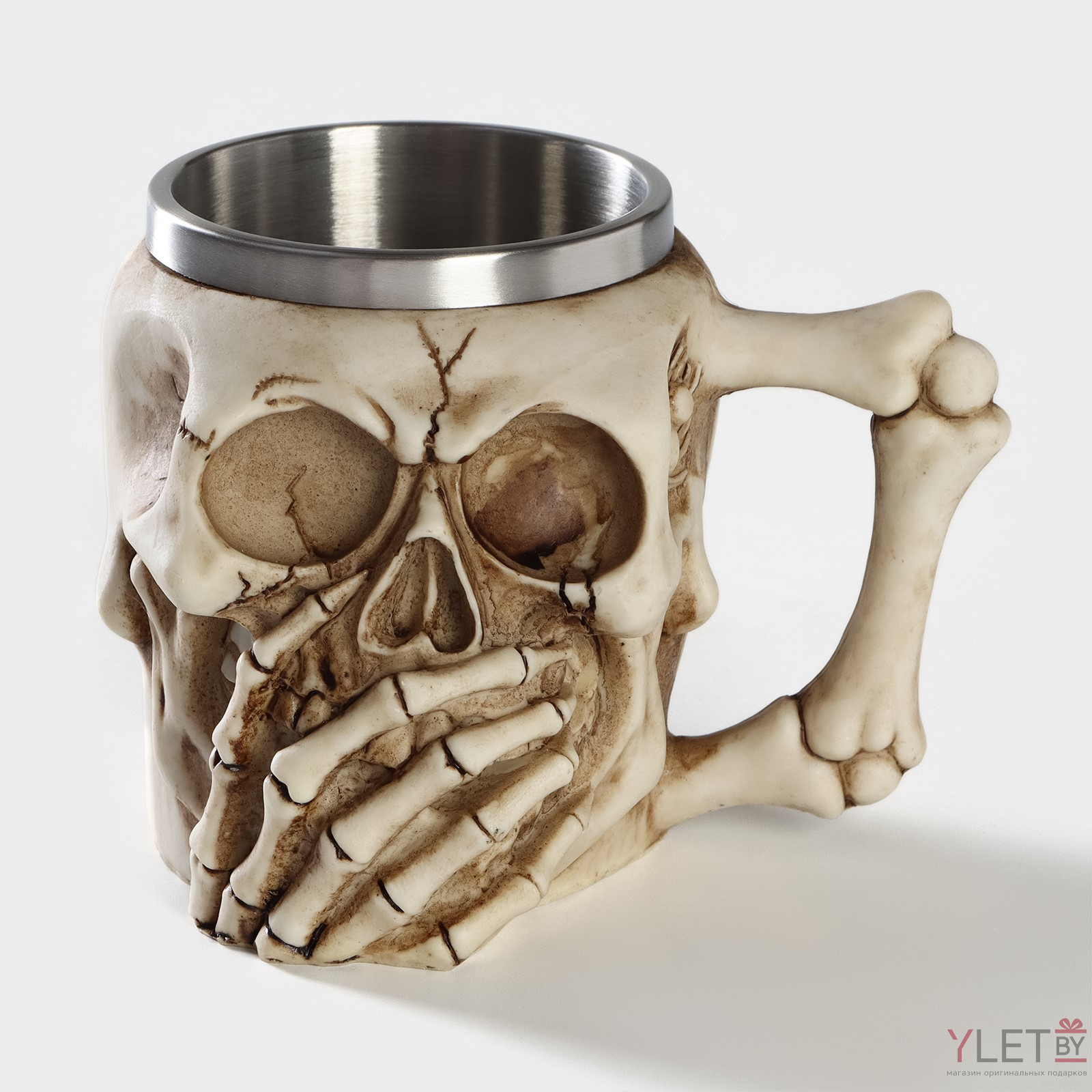 Кружка «Череп, скелет», 400 мл, цвет бежевый (металл внутри)