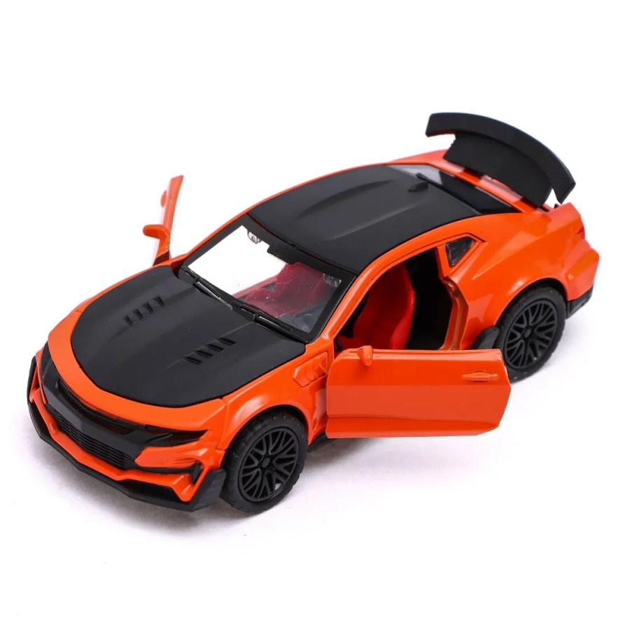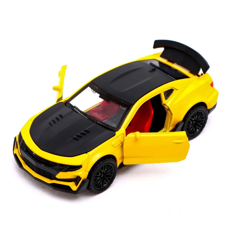 Игрушечная машинка Chevrolet Camaro выполнена из высококачественных материалов, кузов металлический. Длина - 12 см. Машинка имеет инерционный механизм (поставьте машинку на ровную поверхность, потяните за корпус назад, отпустите и она начнёт быстро двигаться вперёд). У машинки открываются двери и задняя крышка багажника. Модель отличается выразительным дизайном, качественным исполнением, реалистичным внешним видом.