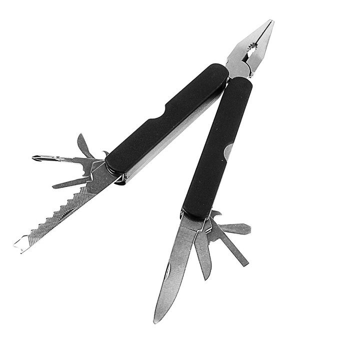Инструмент многофункциональный 8в1,в чехле, рукоять черная можно охарактеризовать двумя словами – удобный и функциональный. Такой инструмент станет для вас незаменимым помощником, например, в бытовой ситуации. А также с ним вам не будет страшно в походе или на пикнике. С его помощью непростая ситуация разрешится в два счета.