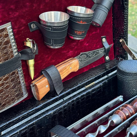 Подарочный шашлычный набор станет достойным презентом для близких, друзей, партнёров и руководителя. Мы предлагаем шашлычные наборы отличного качества, которые будут радовать Вас на протяжении долгих лет. Шашлычный набор стoит купить мужу, друзьям, начaльнику - шeфу или коллеге пo рaбoте!Комплектация: