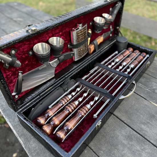 У нас вы можете приобрести современный шашлычный набор, который вам обязательно пригодится для отдыха на природе Отличная и незаменимая вещь на отдыхе на природе!