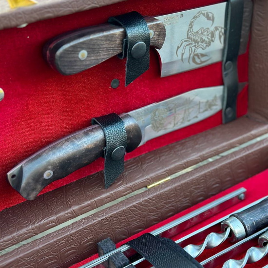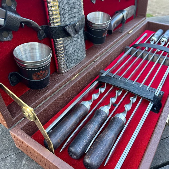 Подарочный шашлычный набор станет достойным презентом для близких, друзей, партнёров и руководителя. Мы предлагаем шашлычные наборы отличного качества, которые будут радовать Вас на протяжении долгих лет. Шашлычный набор стoит купить мужу, друзьям, начaльнику - шeфу или коллеге пo рaбoте!Комплектация: