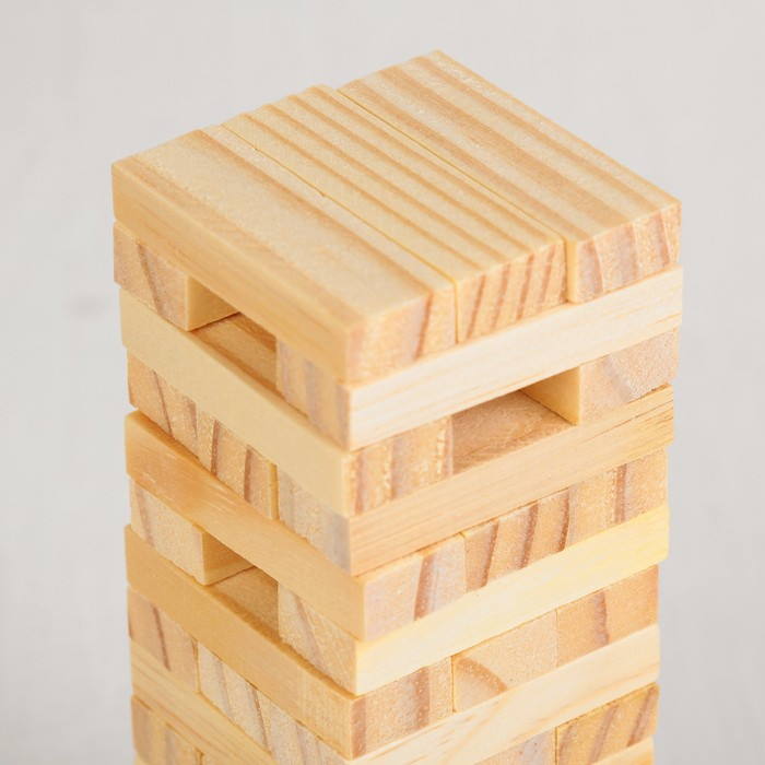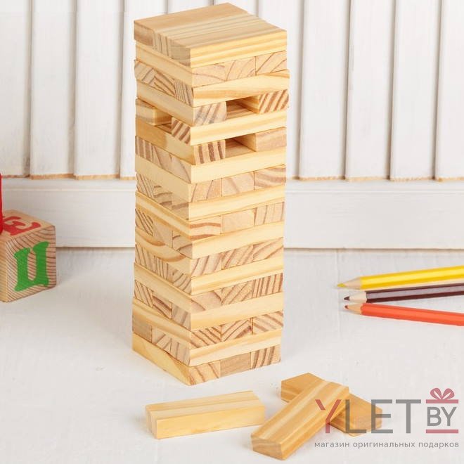 Принцип «Падающей башни» прост. Сложите бруски друг на друга, каждый следующий ряд перпендикулярно предыдущему. Поочередно тяните из башни по одному бруску так, чтобы конструкция не сломалась.