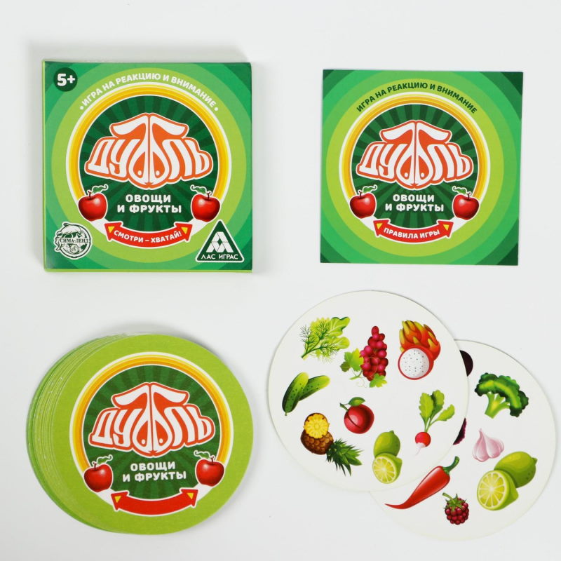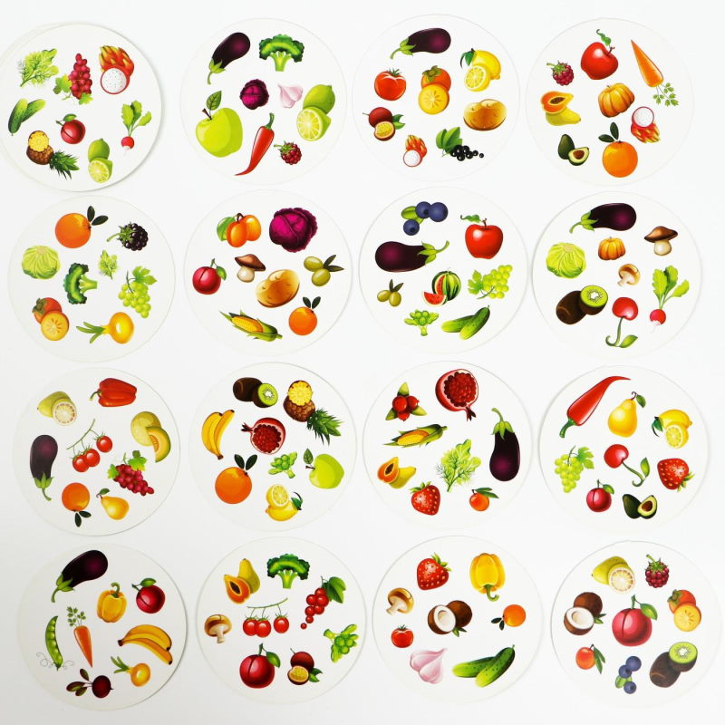 Это простая и захватывающая игра на внимание, которая познакомит маленьких участников с овощами, фруктами и ягодами со всего мира! Вас ждут карты с уникальным набором ярких картинок. На каждой паре карт есть общее изображение. Ищите совпадения быстрее всех и побеждайте!