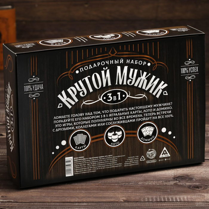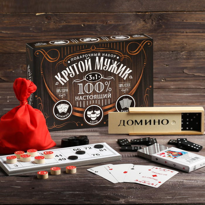 Подарочный набор 3 в 1 Крутой мужик. Домино, лото, карты
