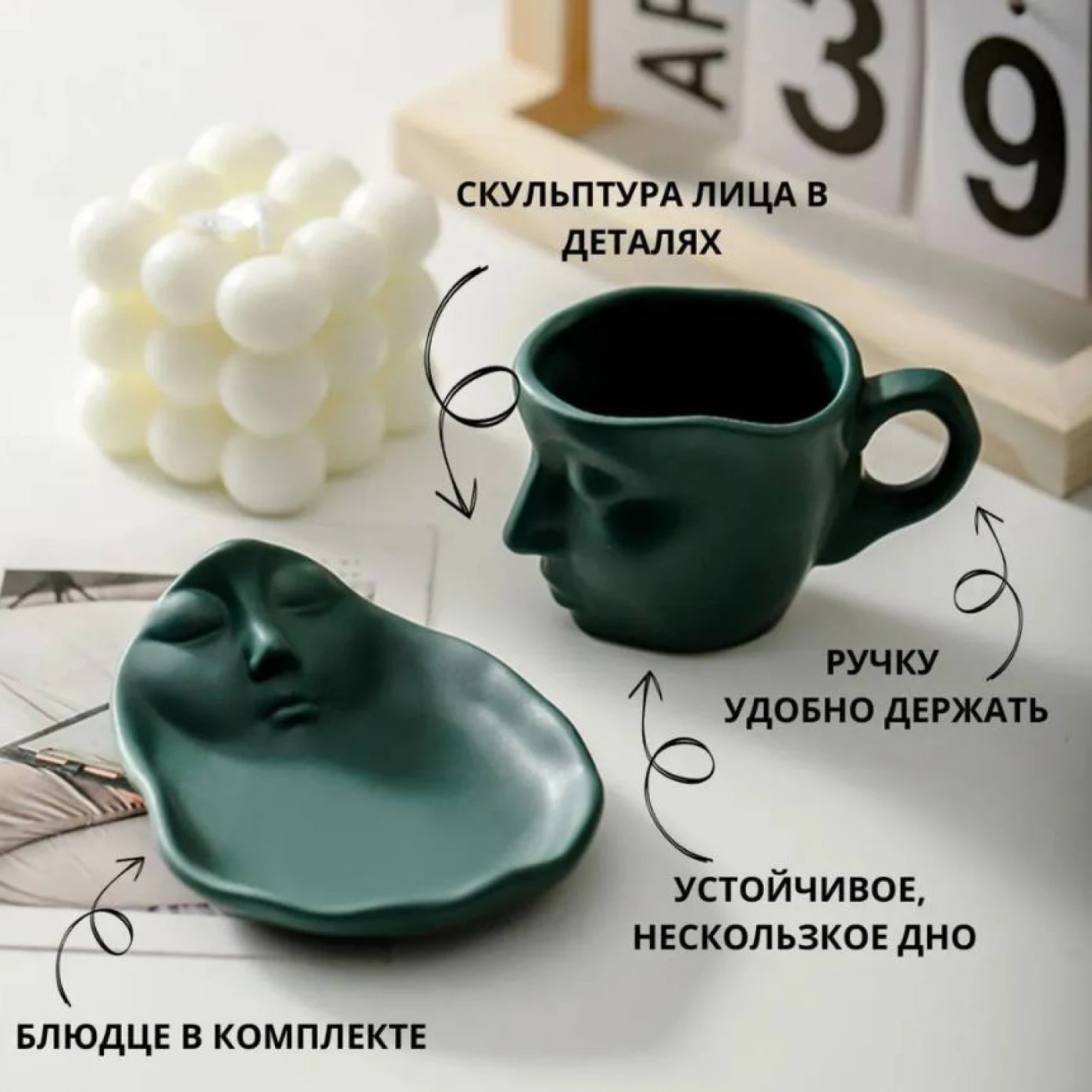 Преобразите ваши повседневные моменты с уникальной кружкой с блюдцем в форме лица! Этот оригинальный набор станет настоящим произведением искусства на вашем столе и поднимет настроение каждому, кто его увидит.Кружка с блюдцем "Лицо" — это идеальный выбор для тех, кто ценит яркие детали и необычные вещи. Она идеально подойдет для утренних завтраков, уютных посиделок с друзьями или даже как оригинальный подарок на день рождения.