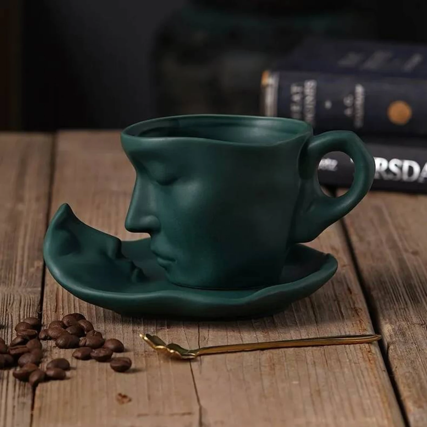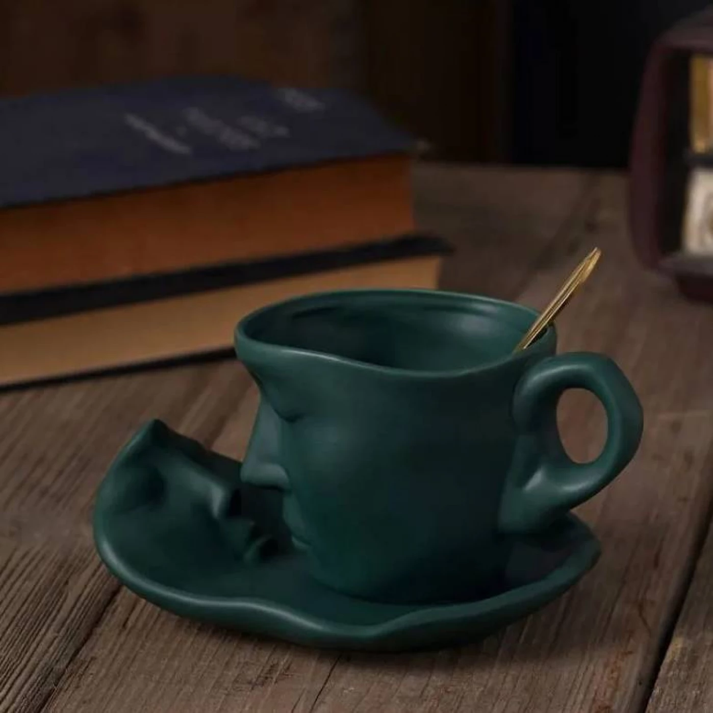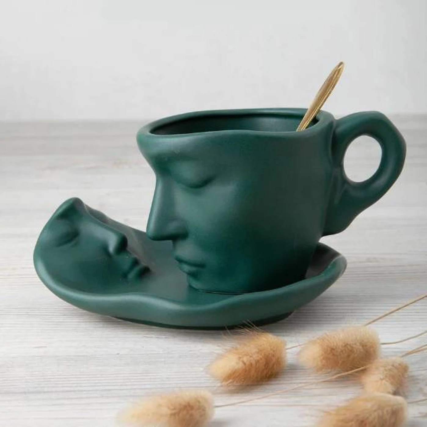Кружка с блюдцем "Лицо" (зеленая)