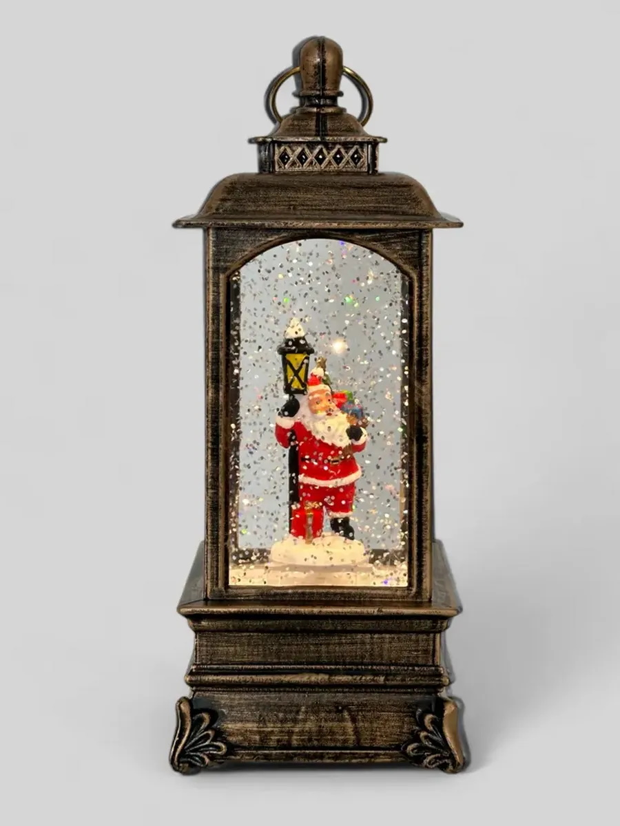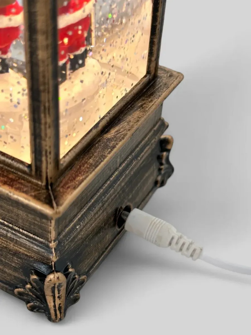 Снежный музыкальный Ретро фонарь квадратный "Дед мороз с фонарем" 8х8х21 см