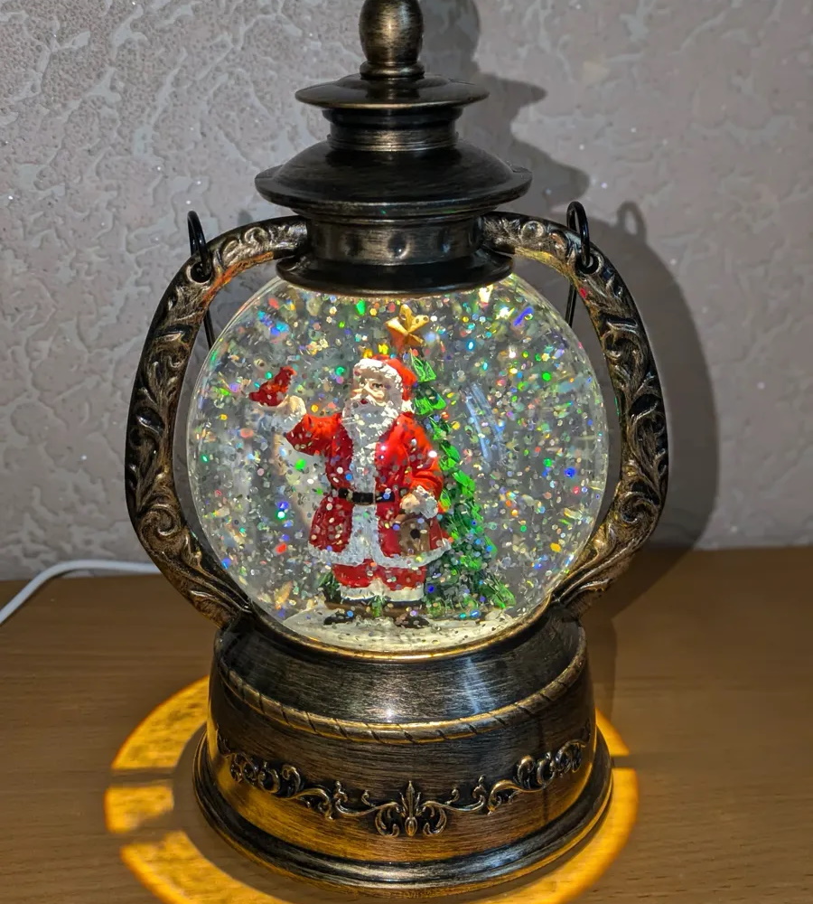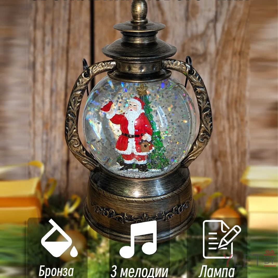 Снежный шар с подсветкой музыкальный Ретро фонарь круглый "Дед мороз с птицей" d - 15 см, высота 22 см