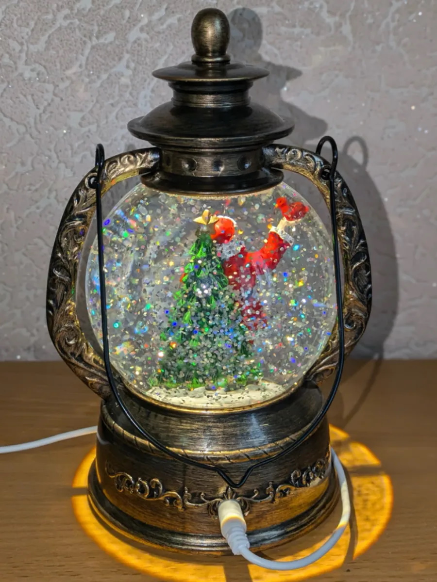 Светильник выполнен в античном стиле, что придает ему особый шарм и изысканность. Бронзовый цвет плафона и встроенные светодиоды RGB создают неповторимую атмосферу праздника. Светильник оснащен встроенным светодиодным светильником (LED) и работает от USB-порта или батареек типа 3 АА (в комплект не входят). Это позволяет использовать его в любом месте, где есть доступ к электричеству или возможность установить батарейки. Управление светильником осуществляется механическим способом, что делает его использование простым и удобным.