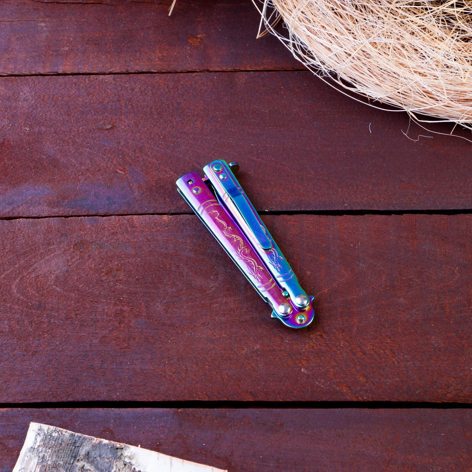 Нож-бабочка "Фиолет" — это не только элегантный аксессуар, но и практичный инструмент, который подойдет как для навыков флиппинга, так и для повседневного использования.