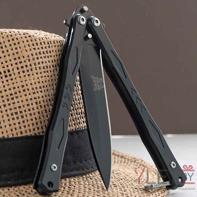 Складной нож бабочка черный Ромбы