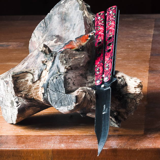 Нож складной бабочка не является холодным оружием. Прибор имеет простую конструкцию и быстро открывается одной рукой. Это даёт ему преимущества в экстремальных условиях. В разложенном виде «бабочка» надёжно фиксируется. В закрытом состоянии остриё ножа полностью скрывают рукоятки, поэтому ему не нужен чехол. Благодаря симметричности «бабочки», с ним удобно работать как правой, так и левой рукой.