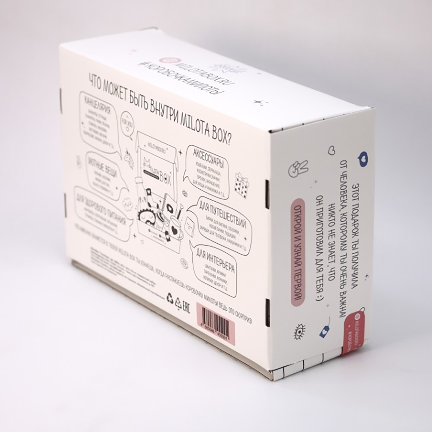 Каждая коробочка MilotaBox наполняет день положительными эмоциями благодаря своим уникальным вещицам, которые приятно использовать в повседневности. Здесь вас ожидает милая канцелярия, вещи для создания уюта в доме, модные аксессуары, а также различные предметы для активного и здорового образа жизни.