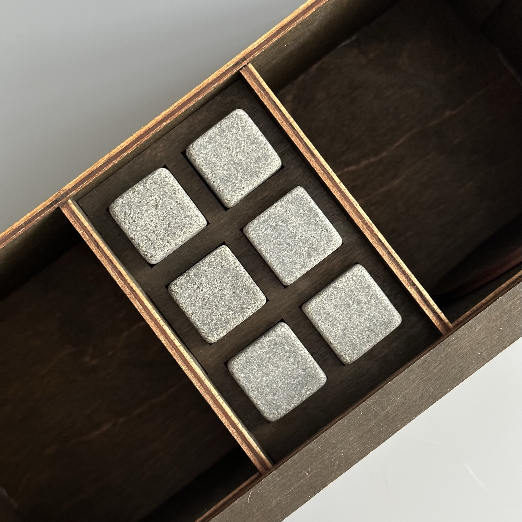 - 6 камней для виски: изготовлены из натурального материала, они охлаждают напиток, не разбавляя его водой, сохраняя насыщенный вкус.