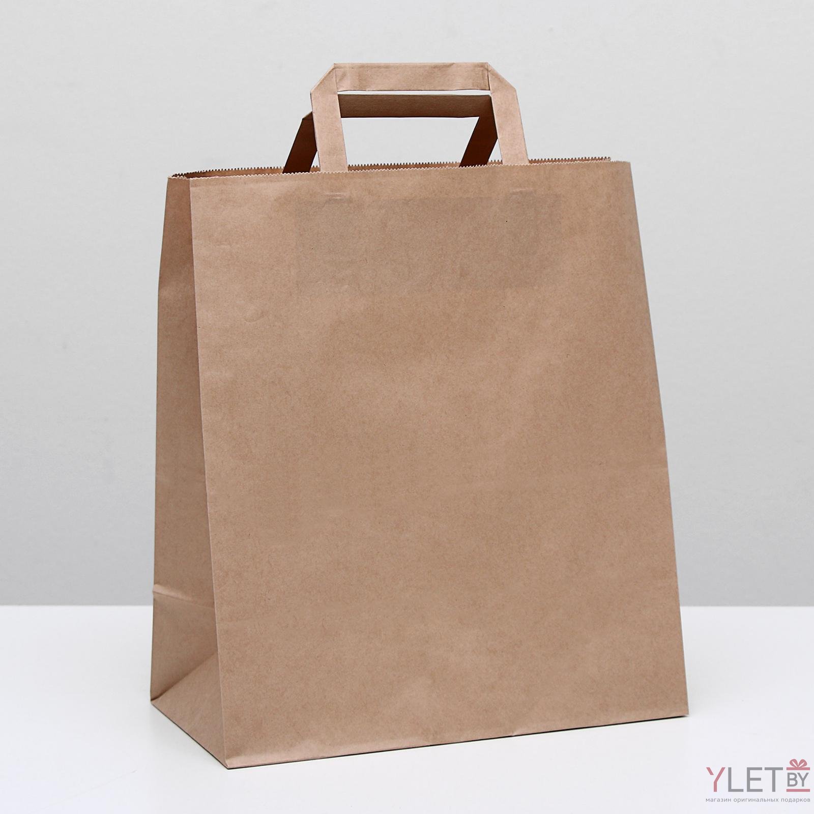 Пакет крафт без печати, плоская ручка 24 х 14 х 28 см