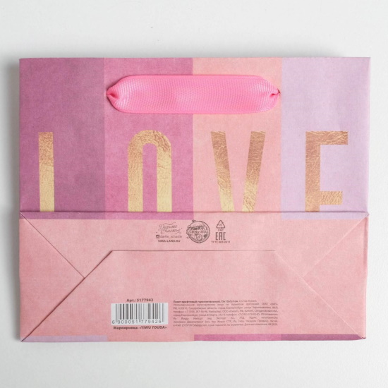 Пакет крафтовый горизонтальный LOVE, S 15 × 12 × 5.5 см